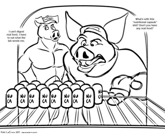 Being a rubber pig isn’t much fun when all you can eat are expensive custom-formulated synthetic foodstuffs.