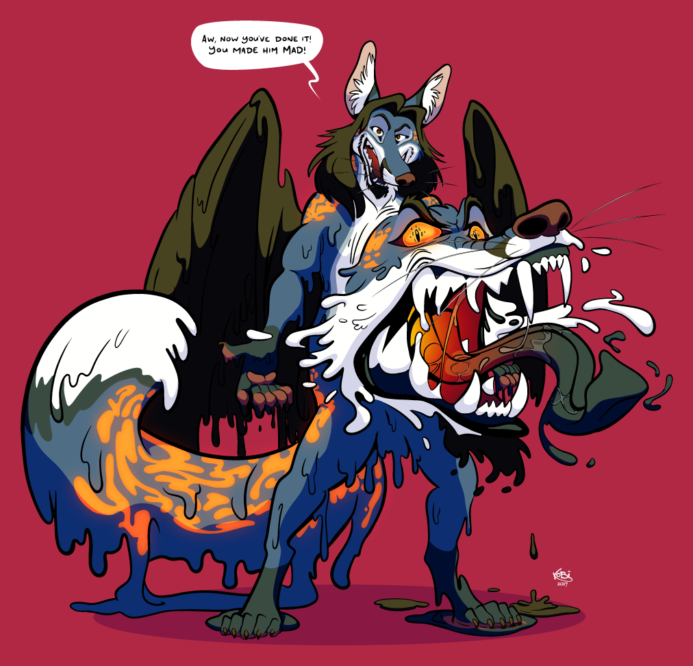 Commission for Pamiiruq Sorrell. I’d never done a headswap pic before, let alone try to figure out how do it between two characters who each have a different number of heads and limbs.